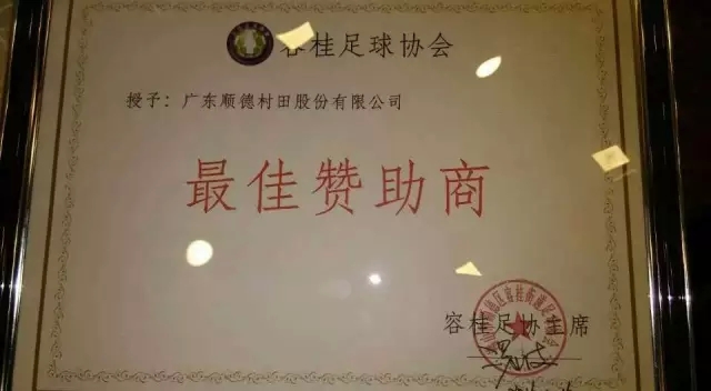 “校(xiào)企攜手·築夢足球”——17.C1起草视频廚衛榮膺容桂足球協會“最佳讚助商”