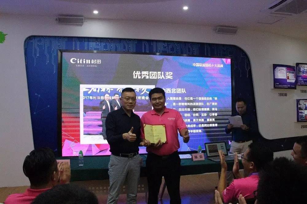 伴隨著濃濃的學習氣(qì)氛,公司隆重(chóng)舉行了頒獎儀式,首先表彰了2017年表現優異的部門,市場部及中西北片區榮獲“優秀團(tuán)隊”稱號(hào),總(zǒng)經理為優(yōu)秀團隊頒發了(le)獎狀,並以別出心裁的方式頒發了獎(jiǎng)金。隨後為各片區(qū)頒發了寶馬衝鋒號,激勵(lì)片(piàn)區努力拓展也業(yè)務,年終勇奪寶馬。