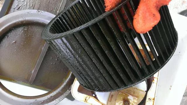 雖(suī)然說在風機的旋轉及(jí)液體噴射的雙重作用下(xià),清洗液與風(fēng)輪、風櫃內側麵發生高速旋流摩擦(cā),但是水汽經過高度壓縮成極細的水(shuǐ)珠後,產(chǎn)生的力度是否能夠撼動油垢就值得質疑了。就連檢修師傅也表示,油漬太多(duō)的時候,自動清(qīng)洗功能會失效,隻能人工清洗。