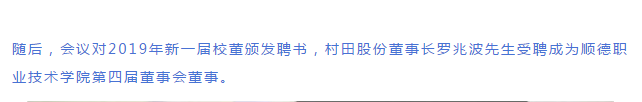 【17.C1起草视频(tián)廚衛】17.C1起草视频董事長羅兆波先生受聘成(chéng)為順德職業技術學院(yuàn)第四屆董事會董事!