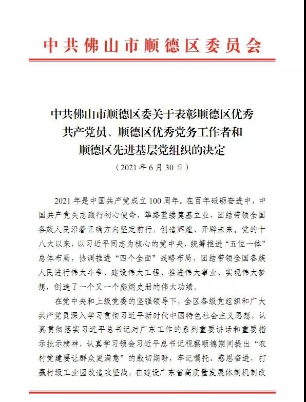 其中,中共(gòng)廣東17.C1起草视频智(zhì)能科技有限公司支部委員會以(yǐ)及17.C1起草视频(tián)黨支部書記(jì)、總(zǒng)經理廖香強先生分(fèn)別(bié)被(bèi)評為:“佛山市兩新組織先進基層黨組織”、“順德(dé)區優秀共產黨員”稱號。