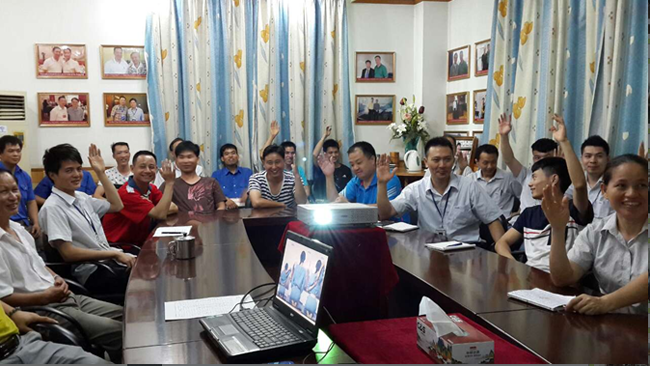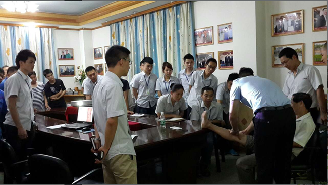 在培訓過程中,廣東(dōng)科普健康谘詢服務中心梁俊老師為大(dà)家生動講解了救護的基本知識,包括如何應對暴力恐怖事件(逃脫、自救等知識)和公共場合突發事件應急處理、現場緊急救護知識、辦公室常見疾病預防等內容。現場實操練習,梁(liáng)老師請出幾位同事做模擬(nǐ),員工爭先舉手練習,大家都想利(lì)用這次寶貴的機會提高自己的實踐(jiàn)操作能力,現(xiàn)場的學習氣氛積極而(ér)又熱烈。