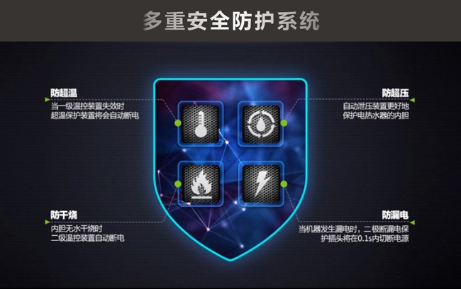 超(chāo)溫、超壓、幹燒(shāo)、漏電(diàn)等多重安全防護裝置(zhì)
