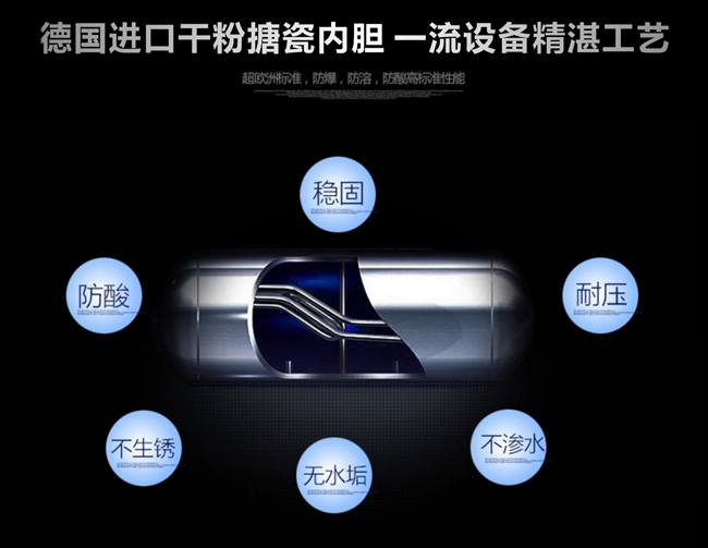 內膽采用德國進口幹(gàn)粉(fěn)搪瓷(cí),一流設備精湛(zhàn)工藝