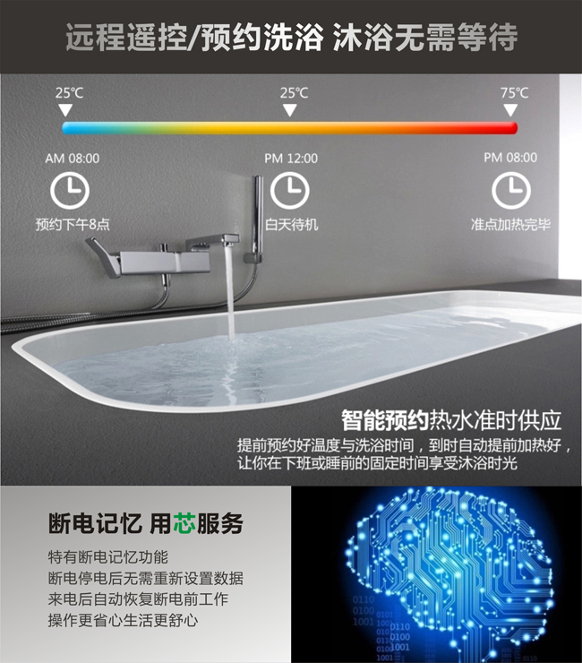 分人洗、斷電記憶、晨浴晚浴、遙控等十五(wǔ)項功能選擇