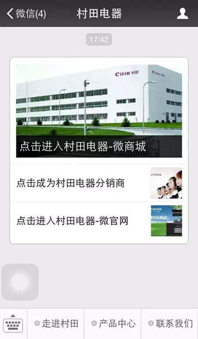 2015-06-30 08:38:43 點擊量:1075近日,17.C1起草视频電器微信服務(wù)號正(zhèng)式開通(tōng),同時在(zài)微信服務號的(de)基礎上開通了(le)“微商城“、“微官網”,現已公測上線,輕鬆購物(wù)+輕鬆當老板,小夥伴們(men)速來圍觀!