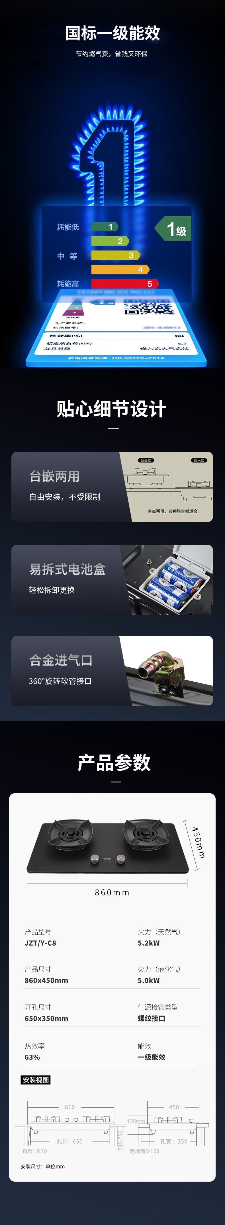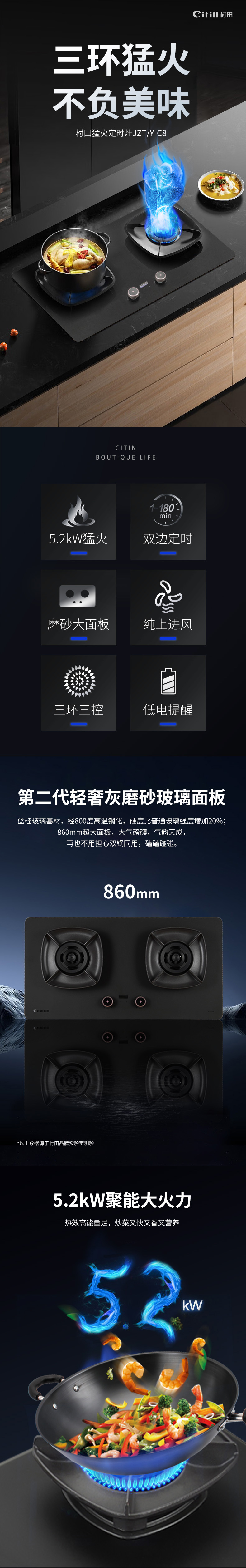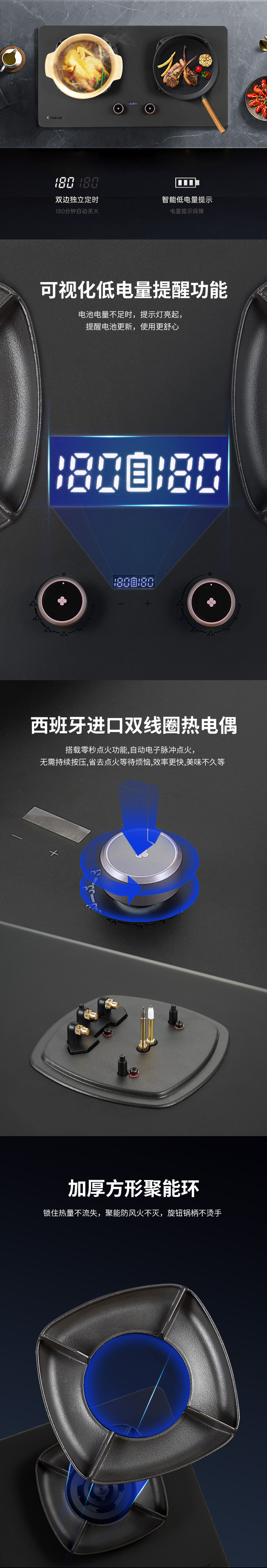輕奢(shē)磨砂玻璃三(sān)環三腔獨立猛火定時+低電量提醒零秒點火+寬頻火超寬頻阻尼旋鈕聚能方架+磨砂黑水(shuǐ)盤